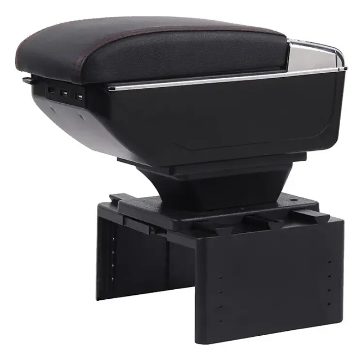 -Cómodo y lujoso reposabrazos para coche, la carcasa exterior de piel negra y un lujoso reposabrazos.
