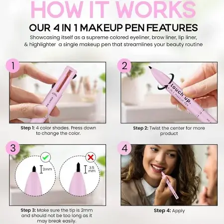 Practicidad absoluta: 4 productos en 1 solo lápiz, ideal para viajes, bolso o retoques rápidos.
