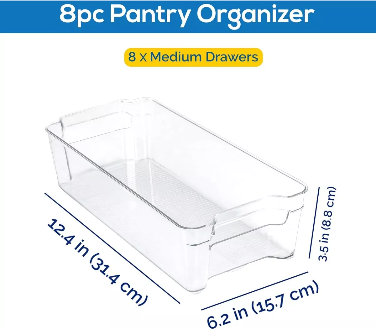Juego de organizador de despensa: el juego de 8 organizadores de nevera transparentes y caja transparente de almacenamiento permite una mejor gestión de comestibles proporcionando el espacio adecuado para la asignación adecuada de productos.