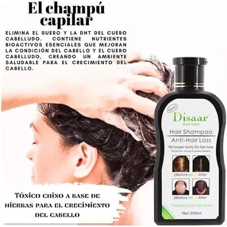 Nuestro shampoo Disaar Hair Care™ es fácil de usar y se adapta a todo tipo de cabello. No tienes que preocuparte por efectos secundarios o ingredientes químicos dañinos. Nuestra fórmula es segura y efectiva, lo que te permite disfrutar de un cabello más fuerte y saludable en poco tiempo.