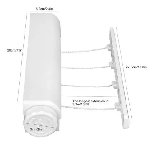 ÙTIL Y ELEGANTE TENDEDERO RETRÀCTIL EXTENSIBLE 4 LINEAS Característica: 1. Pueden soportar una carga de aproximadamente 8 kg / 282,2 oz y el bastidor es fácil de usar. 2. El tendedero se puede bloquear a la longitud requerida y el mecanismo de bloqueo puede mantener el hilo en su lugar. 3. Un tendedero práctico que ahorra espacio para baños, cocinas, balcones o terrazas. 4. El tendedero retráctil compacto proporciona mucho espacio para la ropa. 5. Se fija fácilmente entre dos paredes, puede expandirse a 3,2 m / 10,5 pies (cuatro cuerdas) sin restricciones. Especificación: Condición: 100% nuevo Tipo de artículo: tendedero Material: Plástico Color: como se muestra en las imágenes Retráctil: sí Estilo: moderno y sencillo. Lista de paquetes: 1 x tendedero 4 x tornillo 4 x tornillos La pieza decorativa azul / rosa se envía al azar.